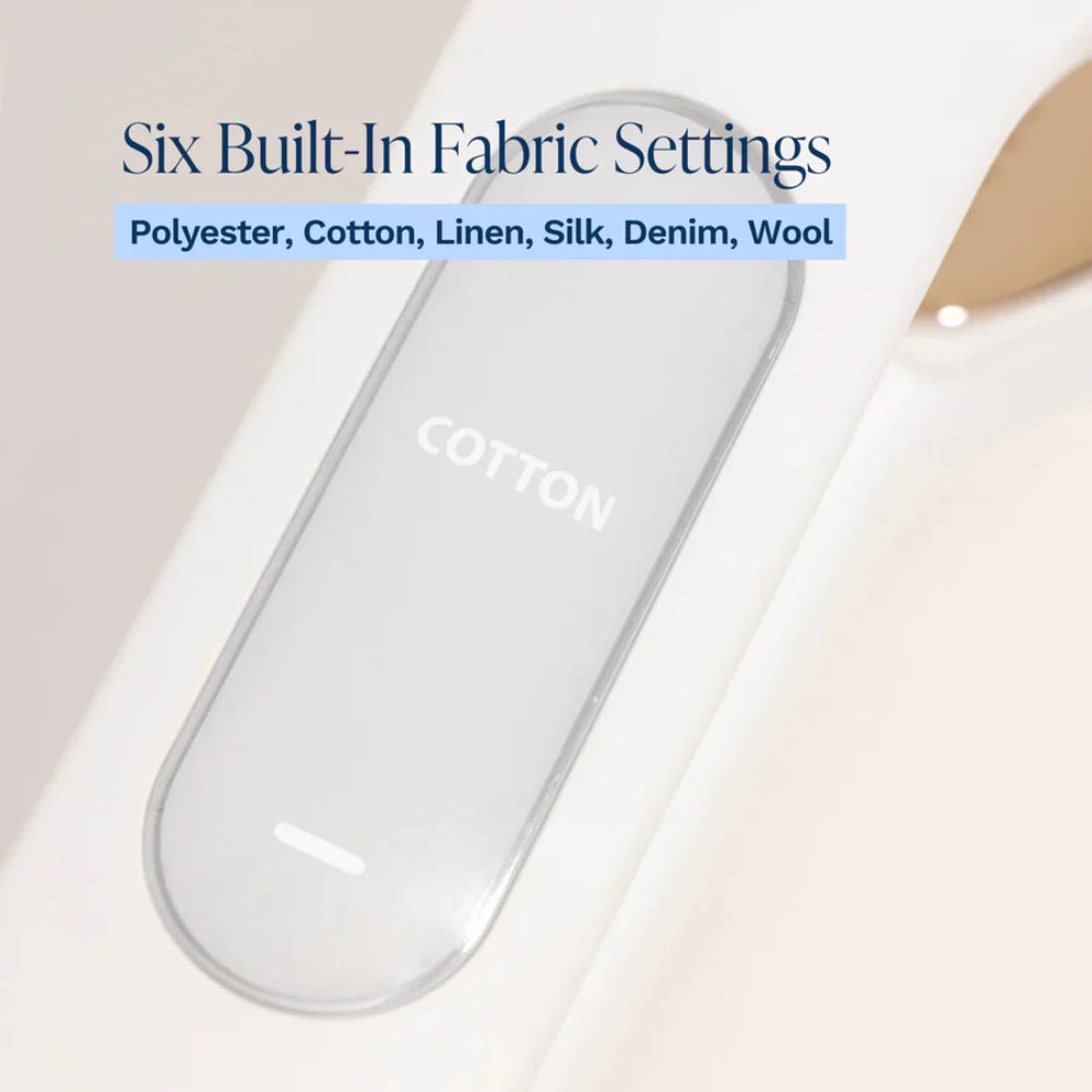 - 6 Fabric Settings: Poly, Silk, Cotton, Denim, Wool, Linen